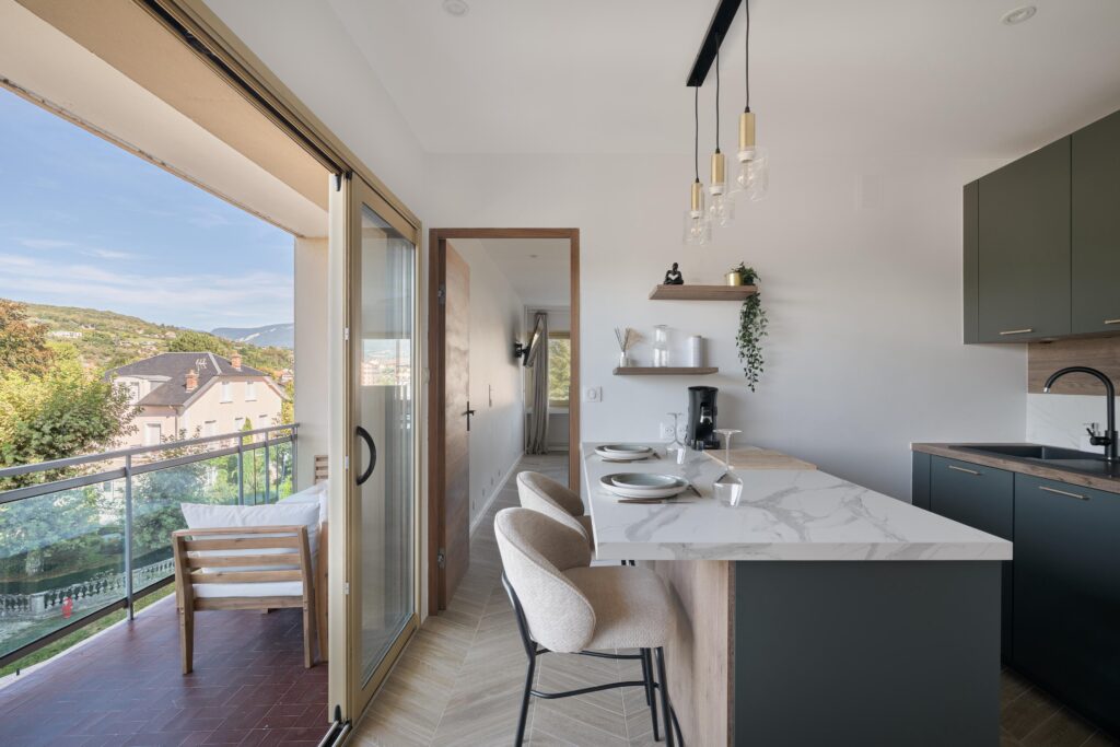 Un projet complet de rénovation sur mesure pour un appartement situé au bord du lac du Bourget, pensé pour la location saisonnière haut de gamme.