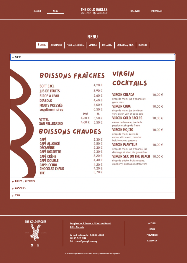 Le travail a porté sur la refonte de la charte graphique, la mise à jour du logo et la création du web design, en collaboration avec Inspire by C, notre partenaire développeur web. L’accompagnement a également inclus la conception des supports de communication : cartes de visite, menus papier et version web, pour une identité visuelle cohérente et actuelle.
